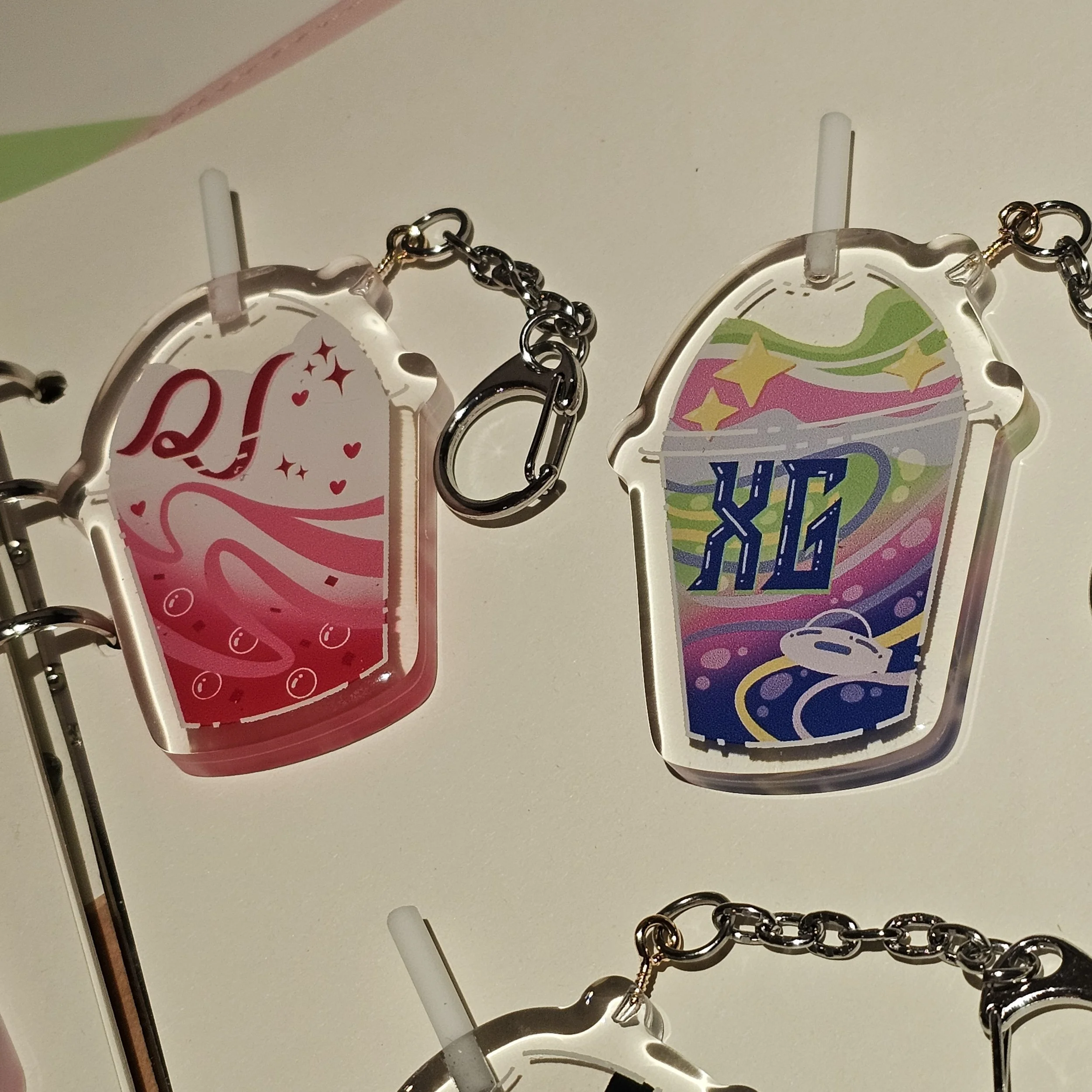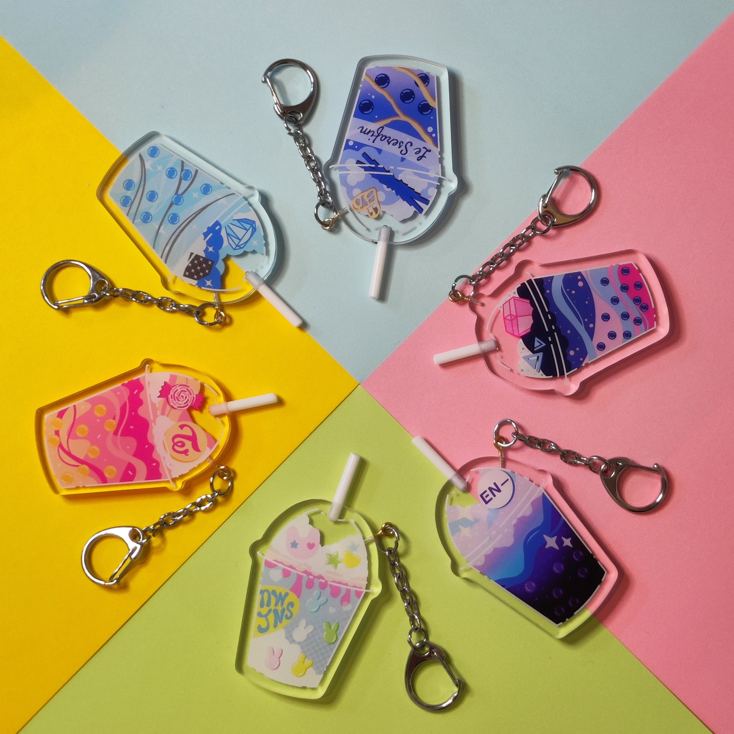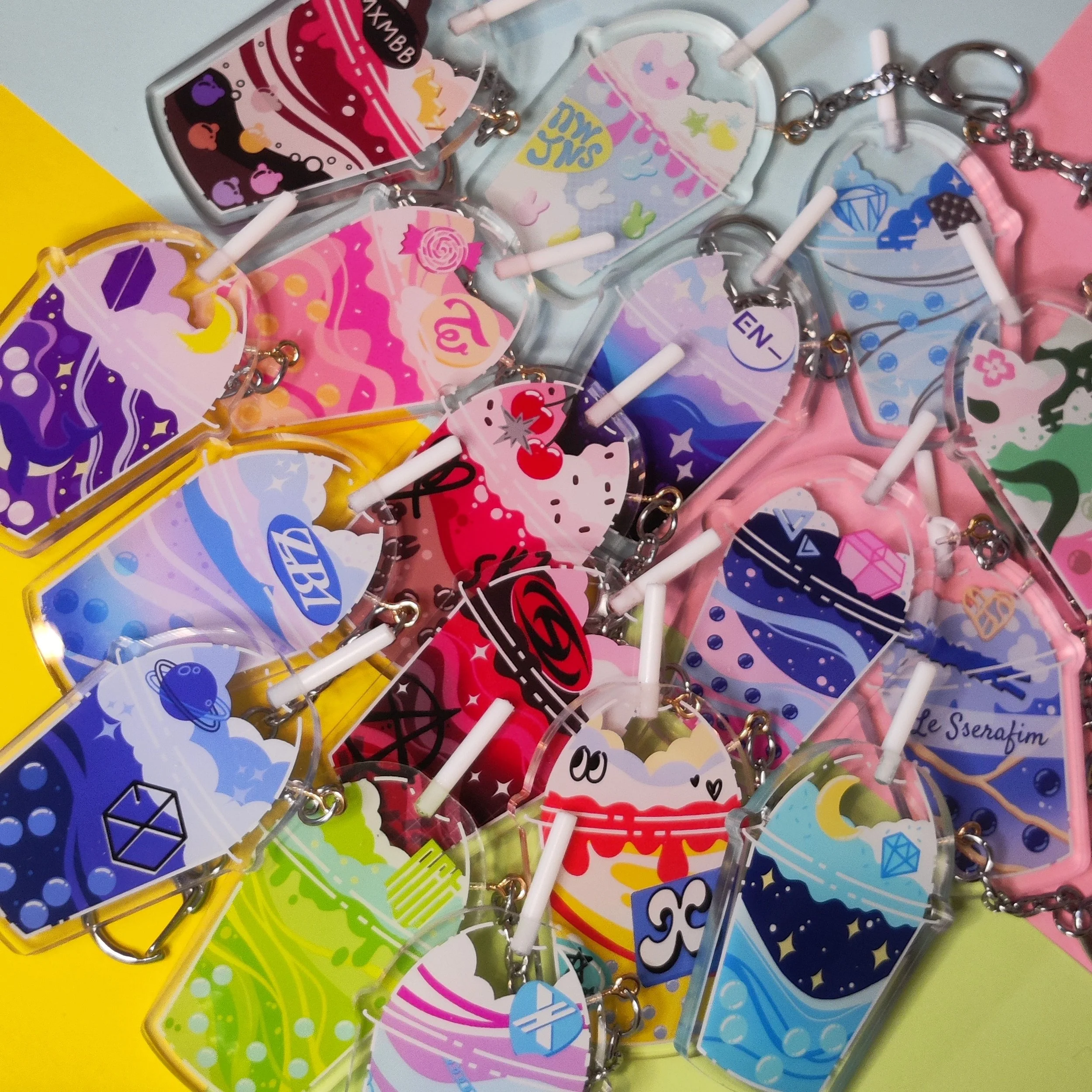 these are double-sided charms inspired by different K-pop groups!