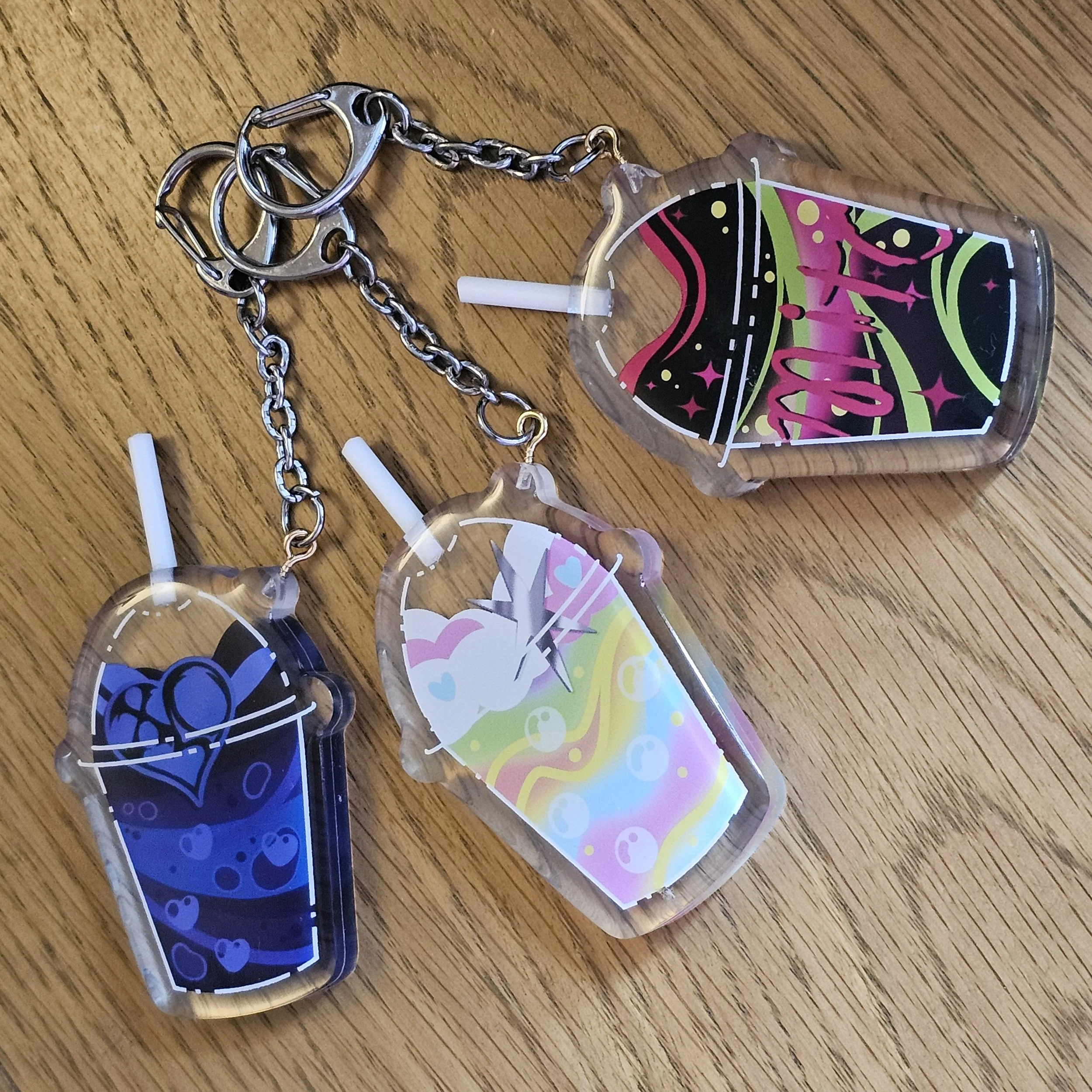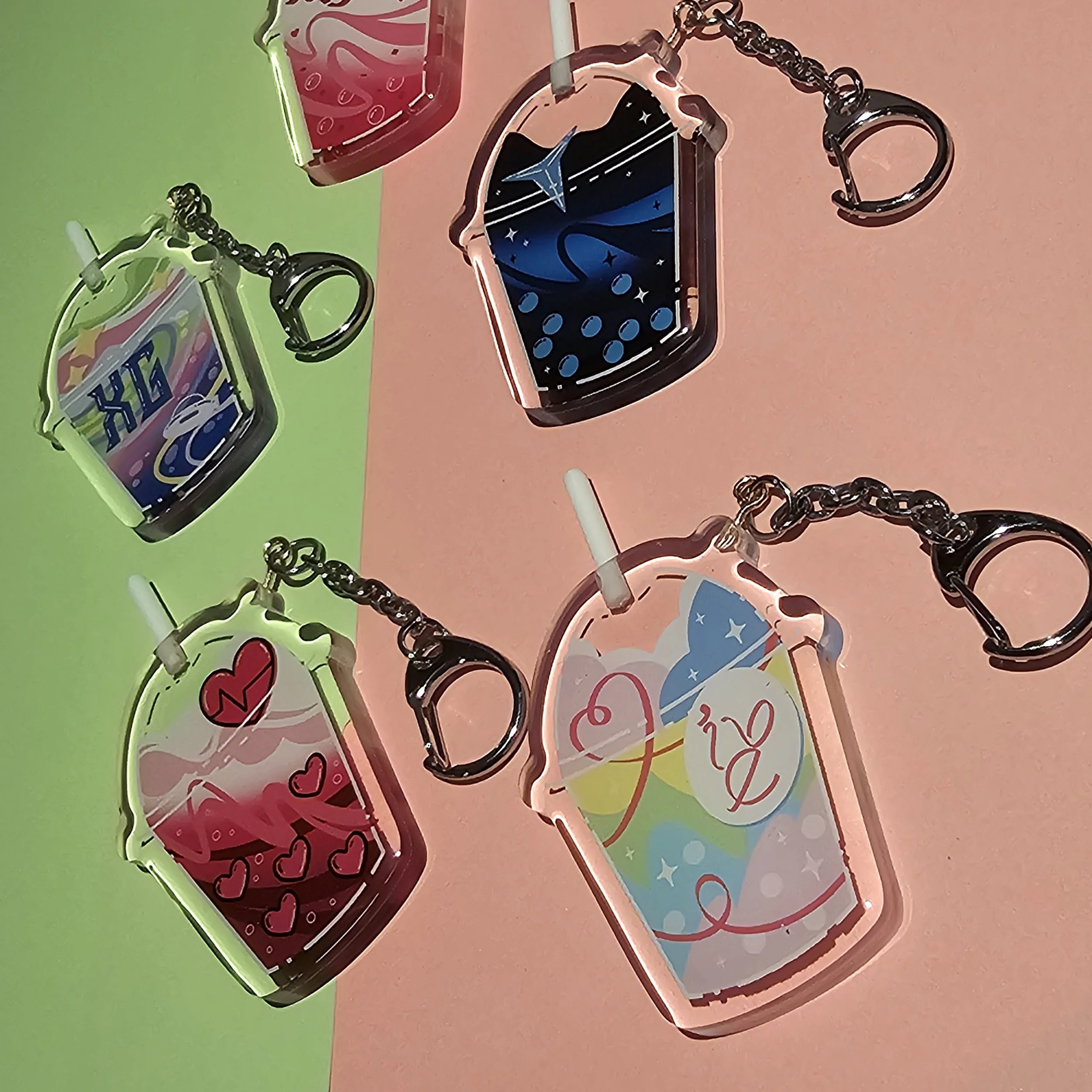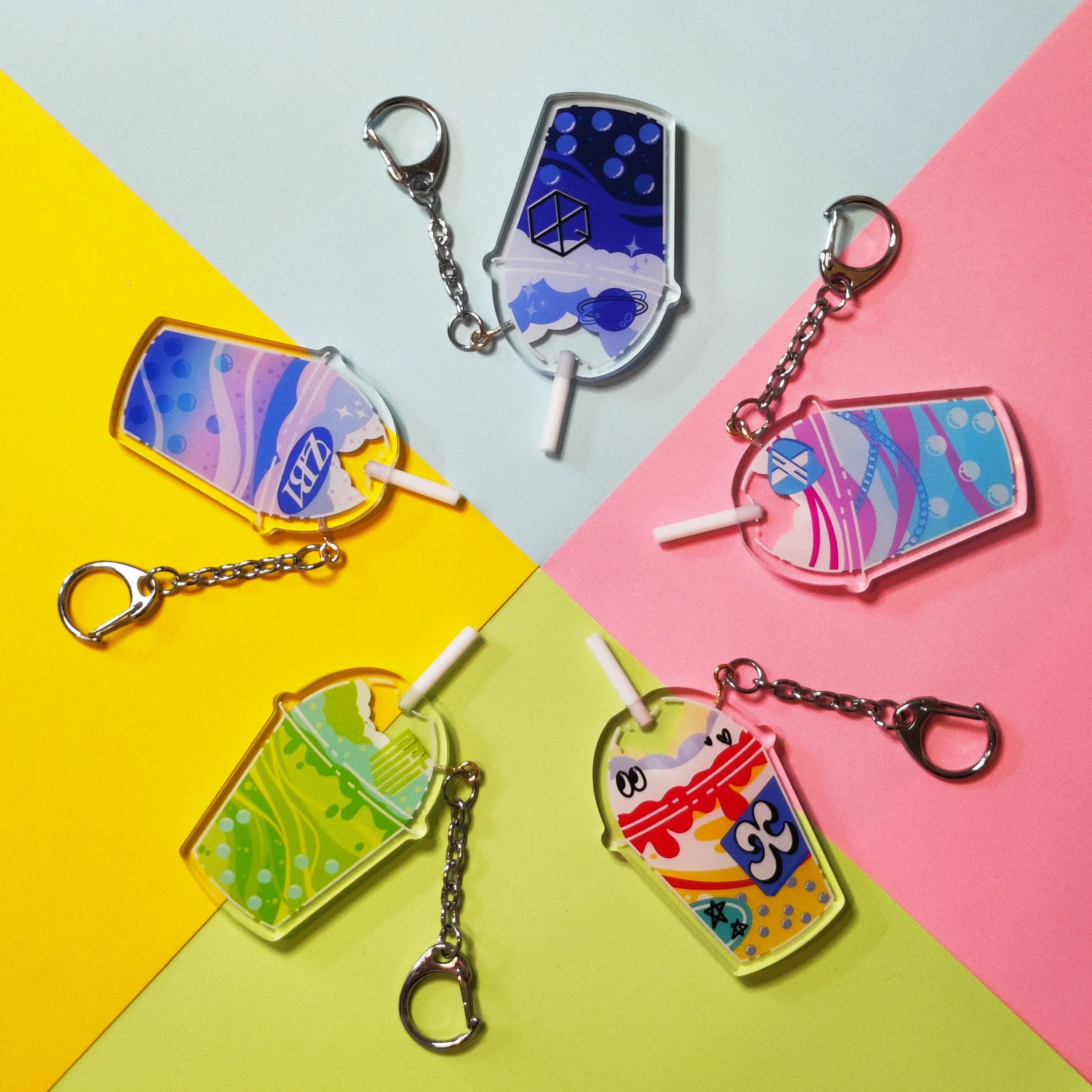 these are double-sided charms inspired by different K-pop groups!